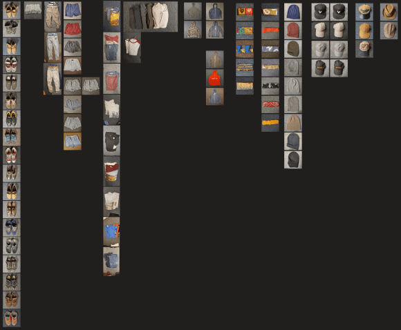Since the different stacks of course had different amounts of items. This system allowed me to have in general three different types of pants, the above-mentioned, but still being able to reduce my outfit decisions to a minimum. And whenever I needed a specific color or type, I simply could choose without the randomized stacking system.