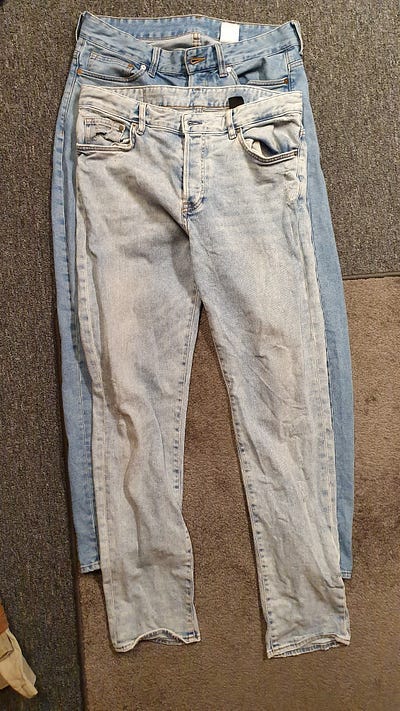 Usually doesn’t result in much cash. I actually sold the second, the washed-out jeans for 10€ on eBay, since these pair was even wider: 33, and was the first one to be dumped in order to embrace a